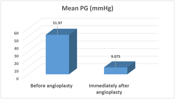 The data was collected, coded and entered to a personal computer. It was analyzed with the program Excel 2016. Values are expressed as (mean ± standard deviation). The student paired t-test was used to compare pre- and post angioplasty pressure gradients. A p value less than 0.05 was considered significant.
