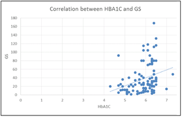Results: The level of HbA1c was positively correlated with Gnsini score (r=0.35, P<0.05,). However HbA1c has no significant correlation with either RWMSI (r= -0.09, p>05) or LVEF (r= -0.04, p>0.05).