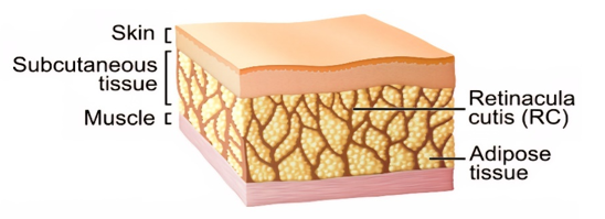 Retinacula cutis and weight lossThe superficial fat compartment is anatomically divided into two distinct strata: the areolar adipose tissue (AAT), commonly identified as the hypodermis, and the lamellar adipose tissue (LAT). These layers are demarcated by fibrous septa known as the retinacula cutis, which provide compartmental organization and mechanical cohesion. The three-dimensional organization of these structures directly influences tissue mobility and the distribution of subcutaneous fat.10