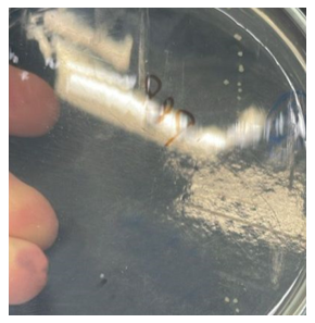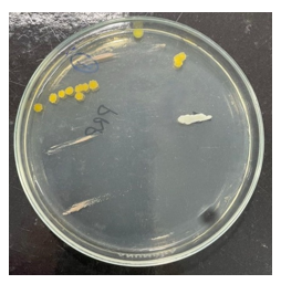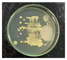 The external surface of the tubes was evaluated using a direct smear technique on nutrient agar. A significant increase in bioburden was observed after clinical handling by 3 operators, compared to baseline pre-use conditions. This increase demonstrates cross-contamination mediated by contact with contaminated gloves, transfer from instruments, or deposition of aerosols from the surgical field (Figures 5 and 6). Regarding the microbial profile of the internal contents, three distinct species were identified under aerobic conditions, compared to only one species under anaerobic conditions, notably one sample with simultaneous growth under both conditions (polymicrobial contamination). This asymmetry suggests greater vulnerability to colonization by environmental microorganisms under oxygenated conditions.