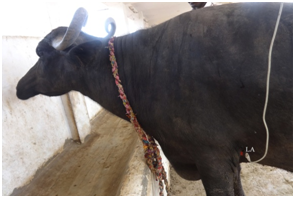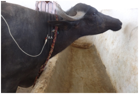 Electrocardiography is non invasive and inexpensive technique which can be give useful information for diagnosis of arrhythmias and conduction abnormalities.1 Electrocardiography (ECG) is considered as one of the most important parameter for an animal suffering with the cardiovascular problem. Electrocardiography also useful as prognostic indicator in large animal medicine, and it provides a record of the varying potential difference that occurs over the surface of the body as the result of electrical activity within the heart. In large animals, including large animals, a base apex lead has been shown to be an ideal lead system for monitoring cardiac arrhythmias.2 Recently normal ECG study parameters in adult goats were recorded in Andhra Pradesh.3 Literature on normal values of different wave forms duration and amplitude obtained for buffaloes was scarce, and so this preliminary study was undertaken on buffaloes using the Base-Apex ECG lead system in Proddatur of Y.S.R. District in Andhra Pradesh state of India.
