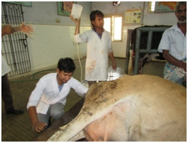One and half month clinical study (May-July2015) was carried out on reproductive and other clinical cases in cattle and buffaloes at Teaching Veterinary Hospital of VCRI, Namakkal and of MVC, Chennai, India. Each case was undergone clinical and physical examination. In some cases clinical diagnosis was performed by specialized diagnostic techniques such as ultrasonography for ovarian cyst, hormone assay for pregnancy diagnosis and heat detection etc. Species, breed, age, no. of parity, body condition score and services were recorded for each case using internship log book. Close inspection and farmer’s interview were done for recording information and clinical diagnosis of cases.