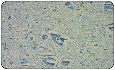 This technique consists of two stains, one is Hematoxylin that has a deep blue-purple color and stains nucleic acids and the other consist in the Eosin that is pink and stains proteins non specifically. With this technique, it was possible to verify the aptitude of the sample, evaluated from the observation of the integrity of different nerve nuclei of bilateral presentation.8,9 In addition, the histopathological study was performed to describe different lesions suggestive of other pathologies.9