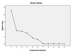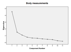 Figure 2 Scree plot showing component number with eigenvalues for body measurements and body indices in Katjang does of Indonesia.
