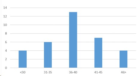 It's evident from Table 2 that the highest number of sick calves were born in the weight range of 36-40 kg. However, it was observed that female calves born on the farm had an average live weight of 39.28 ± 0.328 kg, with the median value (Median or Middle Value; the value that falls in the middle when all values in the dataset are arranged in ascending order) and mode (the most frequently occurring value in the dataset) being 40 kg. The averages ranged from 21 kg to 54 kg.