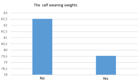 Upon examining Figure 3, which illustrates the weaning weights of calves that experienced and did not experience diseases, it is determined that the weights are 79.53 kg and 82.53 kg, respectively. The difference indicates that calves that experienced diseases Figure 3. completed the process with a weight 3 kg lower than those that did not.