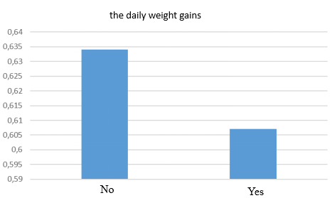 Upon examining Figure 4, which illustrates the daily weight gains of calves that experienced and did not experience diseases, it is determined that the weight gains are 0.607 kg and 0.634 kg, respectively.