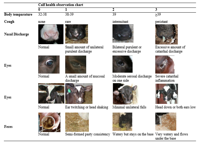 Table 1 Scoring criteria used in health observation of calves