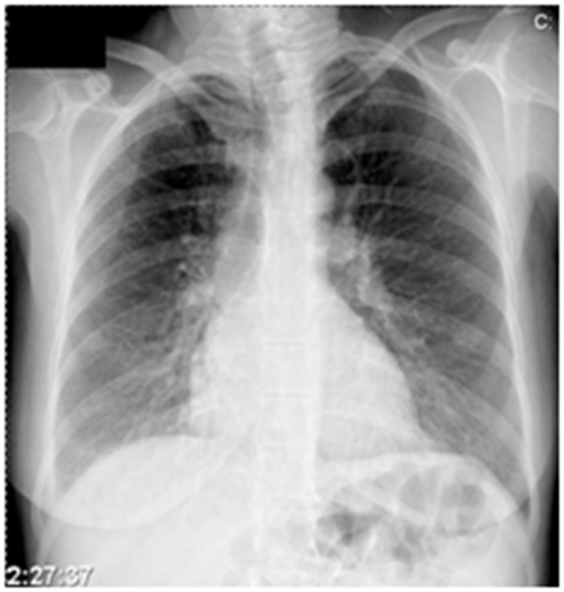 Figure 2 Primary interstitial pneumonia in our patients, were registered in 14cases, and serious respiratory complications for mixed viral-bacterial infection in 3 cases with HFMD.