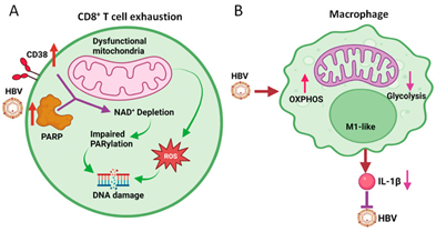 Figure 3 Courtesy ref no-3-Effects of HBV on mitochondrial metabolism of CD8+ T cells and macrophages.