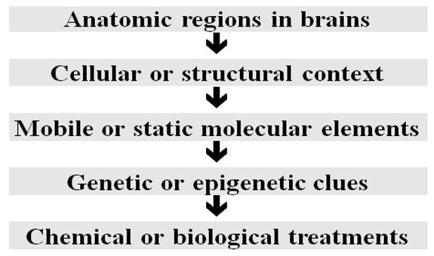 Several areas of human brains (different cerebral location, neural circuitry, peripheral cell types and inflammatory factors) can be effectively evidenced by diagnostic and therapeutic updating. This investigating diagram is based from non-invasive data to large-scale therapeutic study.54–58