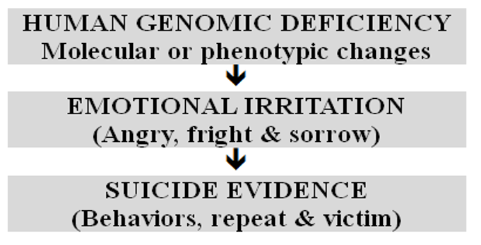 Diagnostic-therapeutic relation for human suicide must familiar with neurobiology and clinical psychiatric symptoms. To attain this goal, deepening molecular biology knowledge is a possible approach. Enriched genetic or molecular data and information for therapeutics and drug development will be seen in future. (Figure 4)