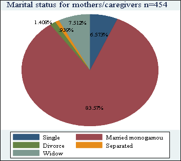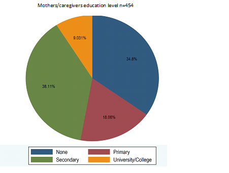 Methods: This was a cross-sectional descriptive study. The study used mixed methods, both quantitative and qualitative. A structured questionnaire was used to collect data on social demographic and social cultural factors, maternal health care utilization and knowledge. Key informative Interviews and Focus Group Discussions were used to collect qualitative data on 454 mothers/caretakers with children aged between 12-23 months reached in Narok South sub county.