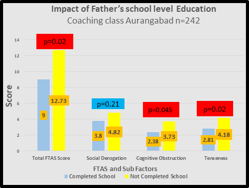 When the influence of father’s education was studied, it was found that higher educational attainment in fathers is associated with better test performance and lower anxiety in children. The key reason is that educated fathers are more likely to engage in educational activities with their children, provide intellectual stimulation, and create a supportive home environment. These factors collectively contribute to reduced test anxiety and improved performance.34 Another study provides a comparative analysis of the impact of fathers' versus mothers' educational levels on their children's test anxiety. It finds that both parents' education levels are important, but fathers' education has a more pronounced effect on reducing test anxiety. The key reason is that fathers with higher education often adopt more modern and supportive parenting styles, which include fostering independence and problem-solving skills, thereby reducing anxiety. Additionally, educated fathers might be more effective in conveying coping strategies for dealing with test-related stress.35 Another research uses a cross-sectional survey to investigate how fathers' educational levels influence test anxiety among secondary school students. The results show that students with fathers who have higher educational qualifications experience lower levels of test anxiety. The key reason is that educated fathers are more likely to be involved in their children's education, providing academic support and setting realistic expectations. This involvement helps in mitigating the stress and anxiety associated with testing.36 Parental educational level has a significant influence on test anxiety levels in children. This is in line with our study wherein low parental educational levels contribute to more test anxiety because of inadequate emotional and academic support from home. Parental education has a positive influence on self-esteem and a negative influence on test anxiety in children. This is explored in more detail in the next section.