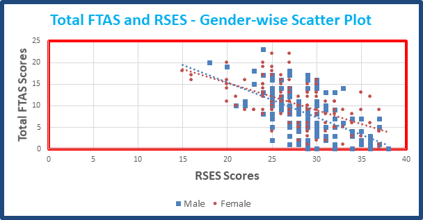 Figure 7 Relationship between total FTAS and sub factor scores, and RSES scores coaching class in Aurangabad n=242.