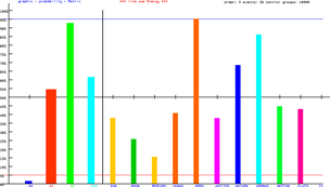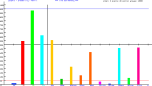 Statistics 4: Probability of events: correlation matrix H Order of the correlation: 6; time shift d: 0 h: 0; GROUP-MEMBERS: 28 ; NUMBER OF THE GROUPS: 10000