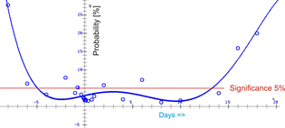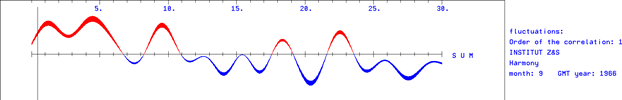 The angles a are calculated according to the astronomical algorithms of Jean Meeus.4 The 1st order correlation function is shown in Fig 4. It represents a first approximation for the study of the influence of cosmic fluctuations on the stable and unstable states of complex systems.