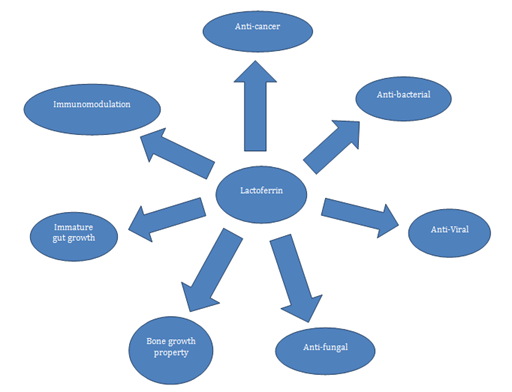 Lactoferrin (LF) is predominately available in mammalian milk and in other secretions of body like tears and vaginal secretions.