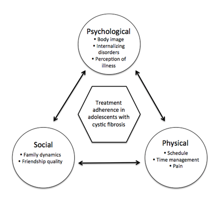 Adherence is influenced by a multitude of variables, some of which serve as facilitators and others that act as barriers. As the identities of these variables emerge in research, it is critical for the CF team to develop strategies for monitoring and improving adherence in adolescents. Establishing healthy self-care behaviors in CF adolescent patients promotes a more successful transition to adult care and enhances disease prognosis.16 The primary objective of this review is to assess the physical, social and psychological factors that affect adherence to treatment in adolescents with cystic fibrosis. Using information from studies from 2009 to 2014, we aim to summarize unique characteristics and struggles of adolescents with CF and suggest plausible implementations for providers that can improve compliance and quality of life for these patients.