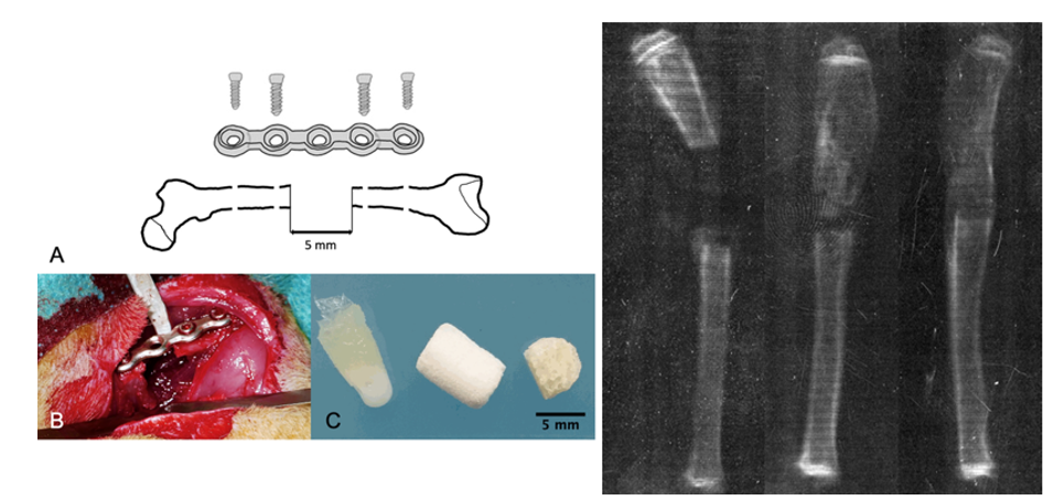 Figure 3 Rat femoral critical-sized defect model and graft outcomes.27