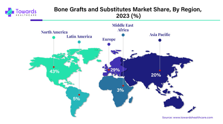 Figure 6 Regional distribution of the global bone grafts and substitutes market (2023).62