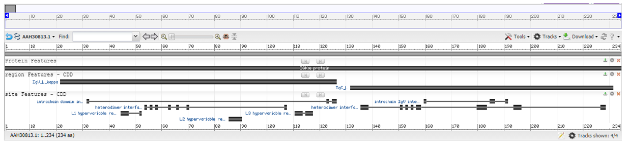 At last the Protein GenBank3 has the following number: AAH30813.1 with 234 amino acids as shown below: