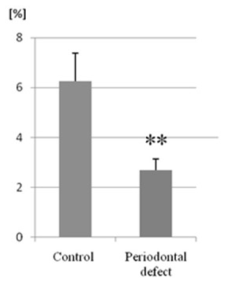 Figure 2 FACS analysis showed that the percentage of MSCs in bone marrow of mice with periodontal defects was significantly lower than in controls.11