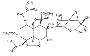 Figure 1 Neem oil is made of many components. Azadirachtin is the most active. It reduces insect feeding and acts as a repellent. It also interferes with insect hormone systems, making it harder for insects to grow and lay eggs. Azadirachtin can also repel and reduce the feeding of nematodes. Other components of neem oil kill insects by hindering their ability to feed.
