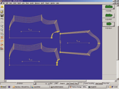 Pattern is the template from which a garment is cut. According to Weber,14 pattern serves as a blue print and contains all instructions one will need for constructing a sewing project or for garments production in the industry. Patterns can be drafted with the CAD software, and manual patterns can be digitized into the programme for modification and further manipulation. Nowadays, the CAD system is a must have software in garment export house, medium and large business. The CAD system helps apparel manufacture and brands maximize cutting room productivity, accuracy in pattern and give the better fit. Examples of pattern making software include Tuka CAD, Lectra, Optitex etcetera (Figure 1).