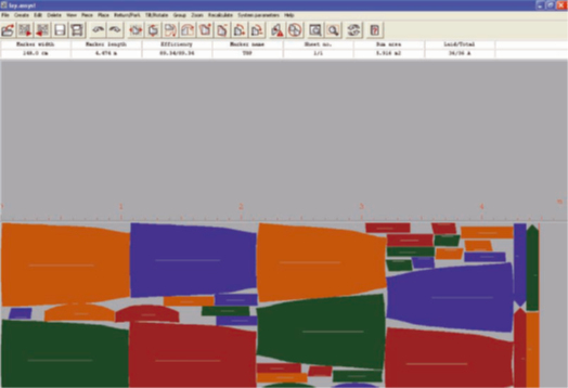 In CAD marker making, the pattern pieces for the marker appear on a screen and can be manually or interactively placed by an operator, “dragging” the pieces into position.13 The programme can also produce the marker automatically. This is a more rapid method of achieving a relatively efficient plan which is the advantage of not needing an operator.16 Aldrich13 states that, the standard of automatic marker making has improved in speed and fabric utilization, and is now used more often than manual functions. The development of computer systems for grading patterns and producing markers offers significant reduction in lead times and labour costs for producing new styles, modification of existing ones and, above all, achieving significant reductions in fabric utilization (Figure 3).