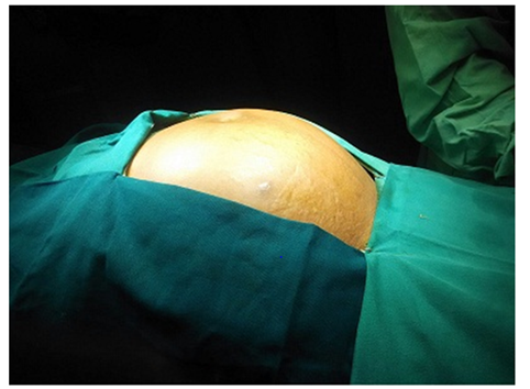 The commonest tumour of ovary is epithelial tumour. They may originate from tube, endocervix, endometrium or bladder epithelium. Mucinous cystadenomas consist of 15-20% of all epithelial tumors. It’s reported to in middle-aged women in India. Common between 3rd and 5th decade. They may reach enormous size filling the entire abdominal cavity.3,4 Sometimes they may get complicate by torsion, haemorrhage, rupture etc. hence early diagnosis and prompt treatment is key for successful management.5 We here by present a similar case of huge mucinous cystadenoma with multiple pressure symptoms managed successfully with surgical approach.