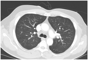 In view of the elevated Troponin I, the patient was initially treated as for Non-ST elevated myocardial infarction (NSTEMI). He was immediately started upon dual anti-platelet therapy together with low molecular weight heparin and subsequently underwent an emergent coronary angiogram which showed minor coronary artery disease. Computed Tomography of Pulmonary Arteries was also performed which showed no evidence of pulmonary embolism (Figure 2). The anti-platelet and low molecular weight heparin was then stopped. However, his gastro-intestinal symptoms worsened and he started to spike a temperature once more in the ward. He complained of persistent abdominal pain despite bowel clearance with laxatives. Computed Tomography of Abdomen and Pelvis was performed. The result showed long segment rectal wall thickening seen with peri-rectal fat stranding which was initially thought to be related to aggressive laxative consumption , but malignancy and infection should be ruled out with suggestion of endoscopy; extensive omental fat stranding, most prominent in the upper abdomen abutting the anterior wall of the transverse colon where there was thickening of the anterior transverse colonic wall to rule out possibility of underlying malignancy; peritoneal fat stranding and nodularity seen with minimal ascites; small volume but rounded inferior mensenteric and para-aortic lymph nodes seen.