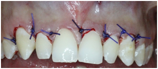 The patient underwent gingivectomy to re-establish the correct position of the gingival collars mainly the zeniths as well as the appropriate clinical length/width ratio of the six anterior teeth (Figure 2).