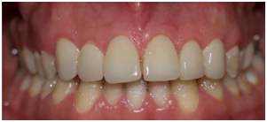 A 30-year-old male patient who had undergone past orthodontic treatment was referred to the prosthodontics department with a chief complaint of unaesthetic smile. His medical history is non-contributory.