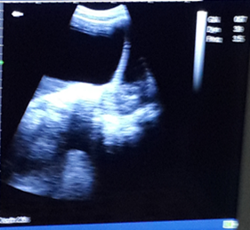 Additional file 1 Trans-abdominal ultrasound image showing a giant left ovary cyst with cumulus oophorus.