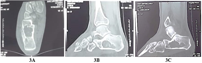 Figure 3B&3C Sagittal section of computed tomography shows two thirds of the calcaneus, thinning of the cortices and involvement in the support area of the calcaneus.