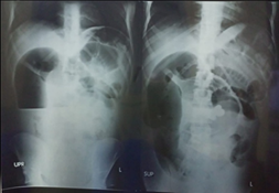 The diagnosis is clinical, coupled with a high index of suspicion. Among the complementary examinations, a simple abdominal x-ray in the standing and supine position has a diagnostic certainty of close to 90% in cases and presents characteristic signs such as the coffee bean sign.3 The objective of this work is to describe the clinical characteristics of a case of intestinal obstruction due to complicated sigmoid volvulus.