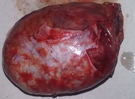 Figure 2 Macroscopic aspect of the surgical specimen showing a homogeneous, well-limited specimen with a major axis of 8cm.