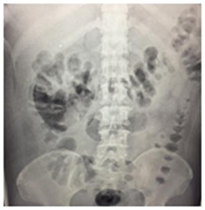 We present the case of a 47-year-old female admitted to emergency department for a 4day disease characterized by fever, chills, adynamia, asthenia and right flank pain of moderate intensity. Past day she refers hematemesis in an occasion. She denied pathologic background. At physical examination she presents with 39ºC, arterial tension 90/60mmHg, 95 hearths per minute, 23 breaths per minute, saturation 91%, right flank pain, positive Giordano sign and positive superior ureteral points, without signs of peritoneal irritation. Laboratories report withe blood cells 13000/mm3, neutrophils 92%, Hemoglobin 13.7g/dL, Platelets 82000, Glucose 595mg/dL, Cr 2mg/dL. Gas Analysis report pH 7.28 HCO3-7 mmol/L BEecf -19.7mmol/L, SO2 88%. Urinalysis report leucocytes >75μL, uncountable red blood cells, bacteries +++, nitrites+++ Glucose +++, proteins +, ketones ++. Pyelonephritis and Diabetes mellitus2 of recent diagnosis was established. After twodays of medical treatment she presented septic shock with acute renal failure AKIN II, hematological and hepatic disfunction. Mechanic ventilatory support and use of norepinephrine were adhere to therapy. Laboratories report with blood cells 8400/mm3, neutrophils 82%, Hemoglobin 9.5g/dL, Platelets 57000, Glucose 595mg/dL, Cr 2mg/dL, total bilirubin 6.3mg/dL, lactic dehydrogenase 572 U/l, alanine aminotransferase 352 U/l. This case was present in a rural hospital and the unique imaging auxiliary available was an abdomen X-ray that shows an air bubble in the right perirenal space (Figure 1). Emphysematous pyelonephritis was diagnosed and urgent right nephrectomy performed after platelet transfusion. The surgery was successful and without complications finding a right kidney of 9x6x4 centimeters with multiple parenchymal abscesses (Figure 2). After 6days extubation was achieved by internal medicine service and after 5days the patient was discharged uneventfully.