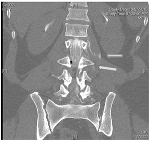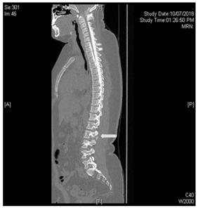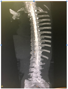 Figure 4 Enlarged area CT spine with Contrast extravasation.