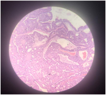 Even the larger sized cyst rarely has a malignant change in it, but in this macrocystic disease of breast the risk of malignancy is 3 to 4times.14 Mezi et al.,15 assessed the Cathepsin-D levels in serum and in breast cyst fluid in patients with gross cystic disease of breast. They interpreted that raised level of Cathepsin-D in breast cyst fluid has no predictive value for cytological type or possible cyst relapse.