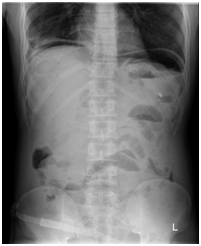 X-ray erect abdomen and chest x ray revealed air under diaphragm (Figure1-2) .He underwent lab tests , which showed normal total leukocyte count (8.67x10^3/µl), nevertheless his coagulation profile (prothrombin time: 20.2 INR: 1.85) was deranged suggestive of sepsis, peritoneal fluid(intraoperative) sent for culture and sensitivity was sterile.
