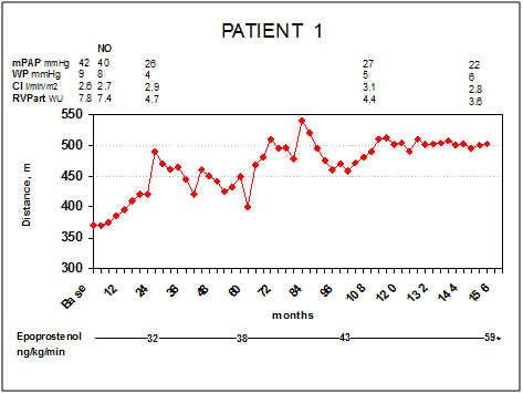 Pulmonary arterial hypertension (PAH) is a progressive disease characterized by an increase in pulmonary vascular resistance (PVR) and pulmonary arterial pressure (PAP) leading to right ventricular failure and ultimately death.1 The past decade has witnessed major advances in PAH management, due to the introduction of specific therapies. Furthermore, oral drugs have been available in the last decade consenting a more wide treatment of the disease among clinicians’ community. ET (endothelin)-receptor antagonists and PDE-5 (phosphodiesterase-5) inhibitors showed to improve exercise capacity, NYHA functional class, hemodynamics and progression of disease in several clinical trials.2–6 However, many patients have clinical worsening during oral treatment. Thus, addition of prostanoids represents an important chance to reach clinical improvement for these patients. During a 16-year period of activity in our referral center we treated almost 500 severe PH patients, and near 100 patients were exposed to parenteral prostanoids. In this paper we describe the clinical course of 3 long-term survivor patients (>10years), as they could be considered to have had an exceptional good response to treatment.