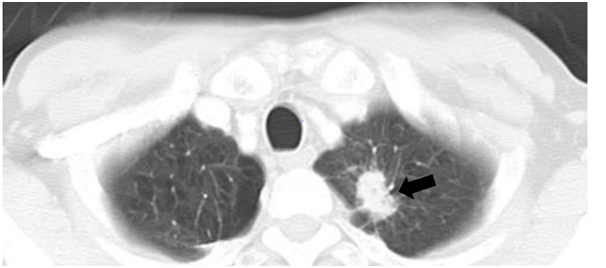 In 2015, a 62-year-old female presented to our hospital with gait disturbance and numbness in the bilateral lower extremities. There was a past history of adenocarcinoma in the apical portion of left lung that had been treated with chemotherapy and radiation in 2012 (Figure 1). In 2013, a brain metastatic tumor from lung cancer occurred that was treated with an operation and gamma knife.