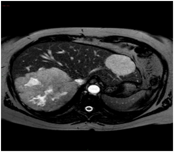 Haemangioma are by far the most common benign tumour affecting the liver, they are especially prevalent in women.1 In most cases, hemangiomas are small and asymptomatic. The widespread use of noninvasive abdominal imaging modalities has led to an increased detection of various lesions. The relation between the complaints of the patient and the lesion detected however is often unclear. Nevertheless, clinical symptomatology and effects are mostly due to size of these benign lesions. Arbitrary giant haemangiomas have been defined as larger than 5centimeter (cm) in diameter. Larger and multiple lesions especially in the left liver lobe might cause (acute) symptoms due to compression of adjacent structures, thrombosis or infarction of the lesion. Hemorrhage has been described as well.2 Rarely, large hemangiomas rupture, either spontaneously or following blunt abdominal trauma. Surgical treatment then is inevitable and may lead to complete relief of symptoms. The management of large hepatic hemangiomas in asymptomatic patients, however, is more controversial, as discussed by Duxbury et al.3 and Schnelldorfer et al.4