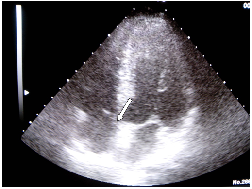 With a diagnosis of brain stroke regarding different vascular regions, the suspected etiology was endocarditis. Blood tests showed increased glomerular sedimentation speed, increased D-dimer (50417) and low platelets (115000). Other complementary exams such as blood serologies, blood and urine cultures were negative. Neurosonological study showed carotid atheromatosis without significant stenosis and a right middle cerebral artery occlusion. In the transthoracic echocardiography a lesion over mitral valvular veil was seen (Figure 2).