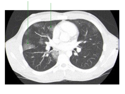 Approximately 6weeks after the initial presentation, the patient was well and a repeat CT thorax was normal. He was discharged without further follow up.