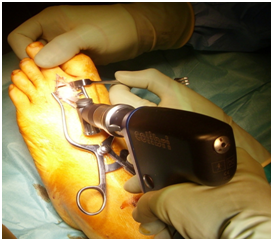 Miyamoto et al investigated the success of osteochondral plug transplantation in 4 patients with late-stage Freiberg’s disease patients. The bone was harvested from the femoral condyle at the knee. The plug transplants all healed within 12months of surgery and the AOFAS score improved from 70.8 pre-operatively to 97.5 post-operatively.10 However, there is an inherent risk of donor site morbidity. Our technique avoids donor site morbidity.