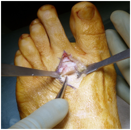 A long 2nd metatarsal is often the cause of abnormal overloading and so shortening osteotomy seems a logical surgical choice in such circumstances. Smith et al noted complete pain relief in 15 out of 16 feet; however 7 patients were left with residual stiffness and certain functional limitations, such as an inability to flatten their toes while standing.9