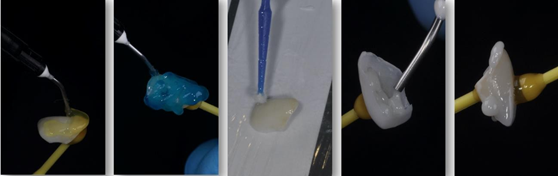 In view of this, using fully light-cured cements is recommended as they have a variety of shades and different degrees of opacity. In addition, the light-cured luting agent has greater color stability than the dual- cured luting agent, due to the absence of the tertiary amine that can undergo long-term color change. The light- cured luting agent provides a thin bond line along with high fluidity and excellent flowability, facilitating the removal of excess cement.5